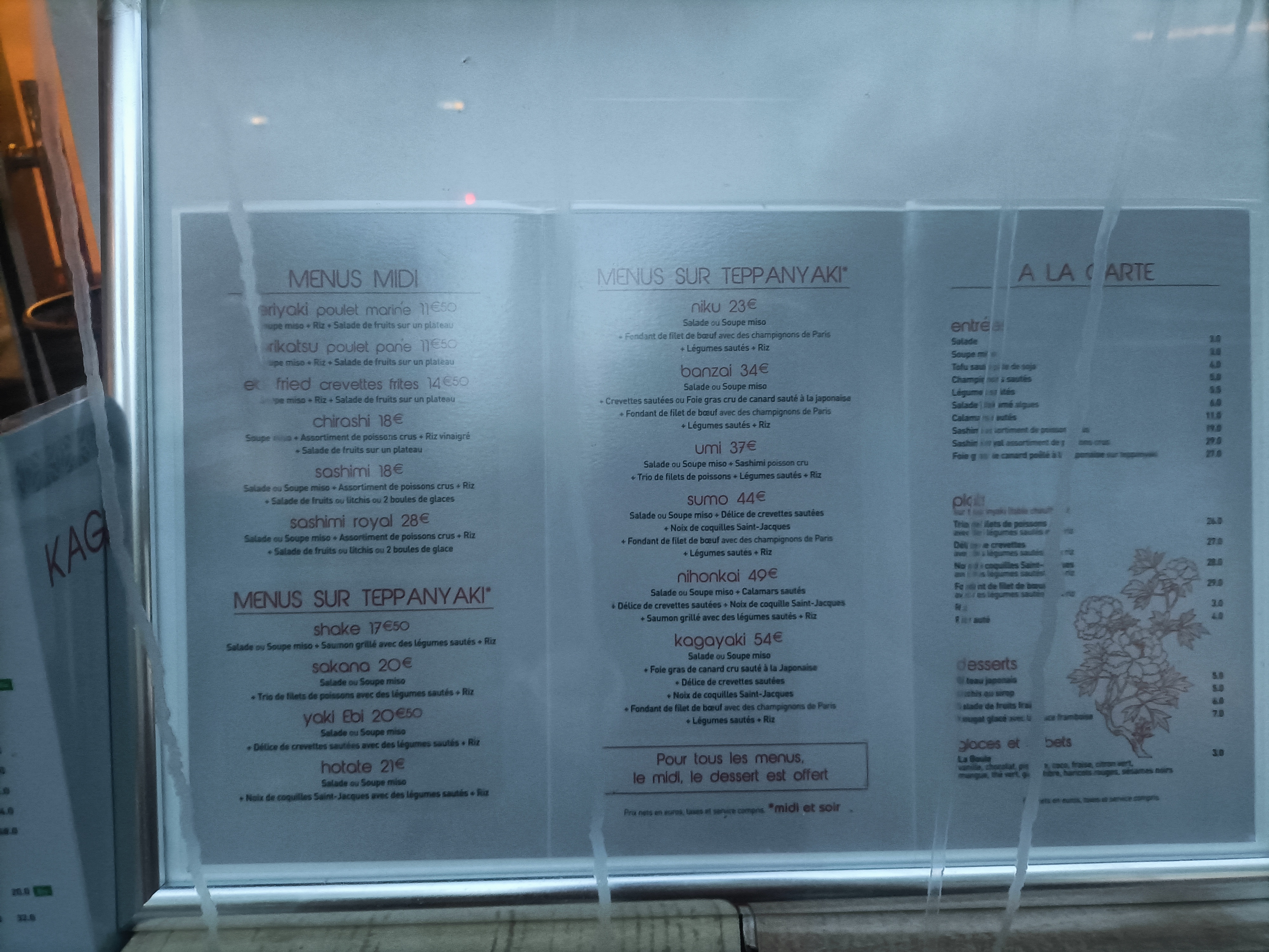 Le menu le cher de la carte reste tout à fait abordable (52€) et la qualité des saveurs est incontestable !!!!! Il ne faut surtout pas s'arrêter à la devanture car vous risquez de rater une superbe expérience. Le chef cuisine devant vous. C'est un plaisir gustatif et visuellement très divertissant ! Étant amatrice de Teppanyaki, c'est le meilleur que je n'ai jamais mangé ! Je vous le recommande x3000